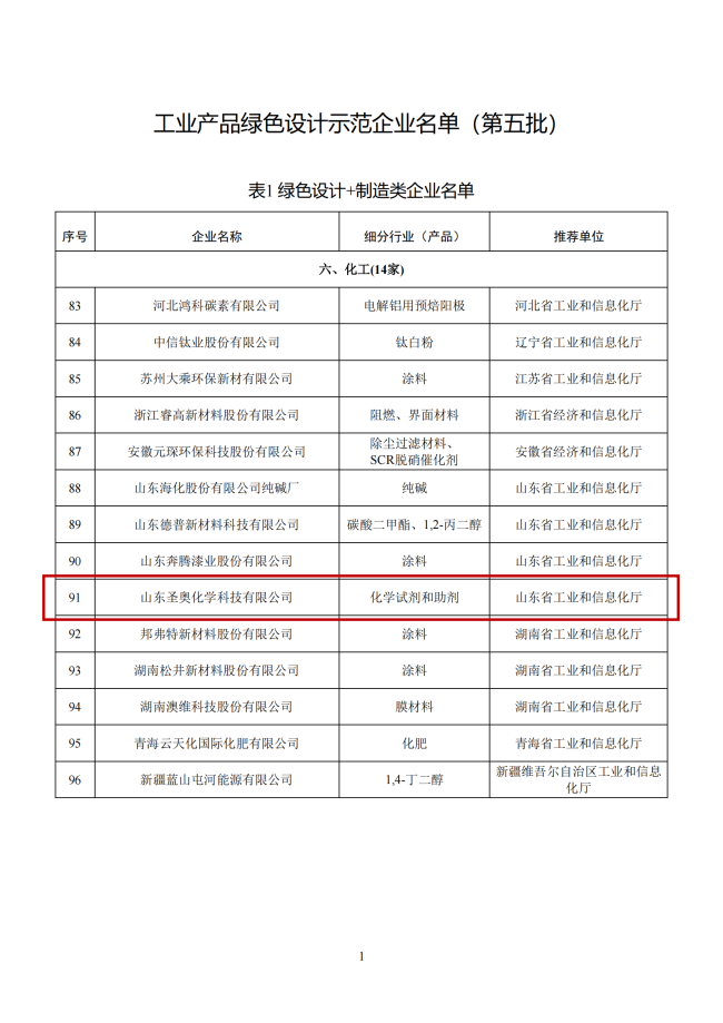 山東圣奧入選工信部工業(yè)產(chǎn)品綠色設(shè)計(jì)示范企業(yè)