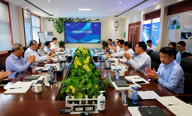 7月23日,李凡榮總經(jīng)理一行赴圣奧化學(xué)子公司泰安圣奧調(diào)研指導(dǎo),聽取工作匯報(bào),并就生產(chǎn)運(yùn)營(yíng)、安全管理、未來(lái)發(fā)展等情況進(jìn)行交流。中國(guó)中化副總經(jīng)理、黨組成員陳德春,安全總監(jiān)張?jiān)龈瑧?zhàn)略執(zhí)行部總監(jiān)張學(xué)工,戰(zhàn)略與投資部總監(jiān)胡徐騰,黨組秘書、辦公室主任李波,化工事業(yè)部總裁、中化國(guó)際總經(jīng)理、圣奧化學(xué)董事長(zhǎng)劉紅生,中化國(guó)際副總經(jīng)理、圣奧化學(xué)CEO蘇賦,化工事業(yè)部辦公室主任、中化國(guó)際董事會(huì)秘書柯希霆等陪同調(diào)研。