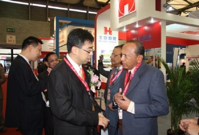圖:會展期間,公司CEO蔡錚琦與印度客人正在進(jìn)行工作交流。