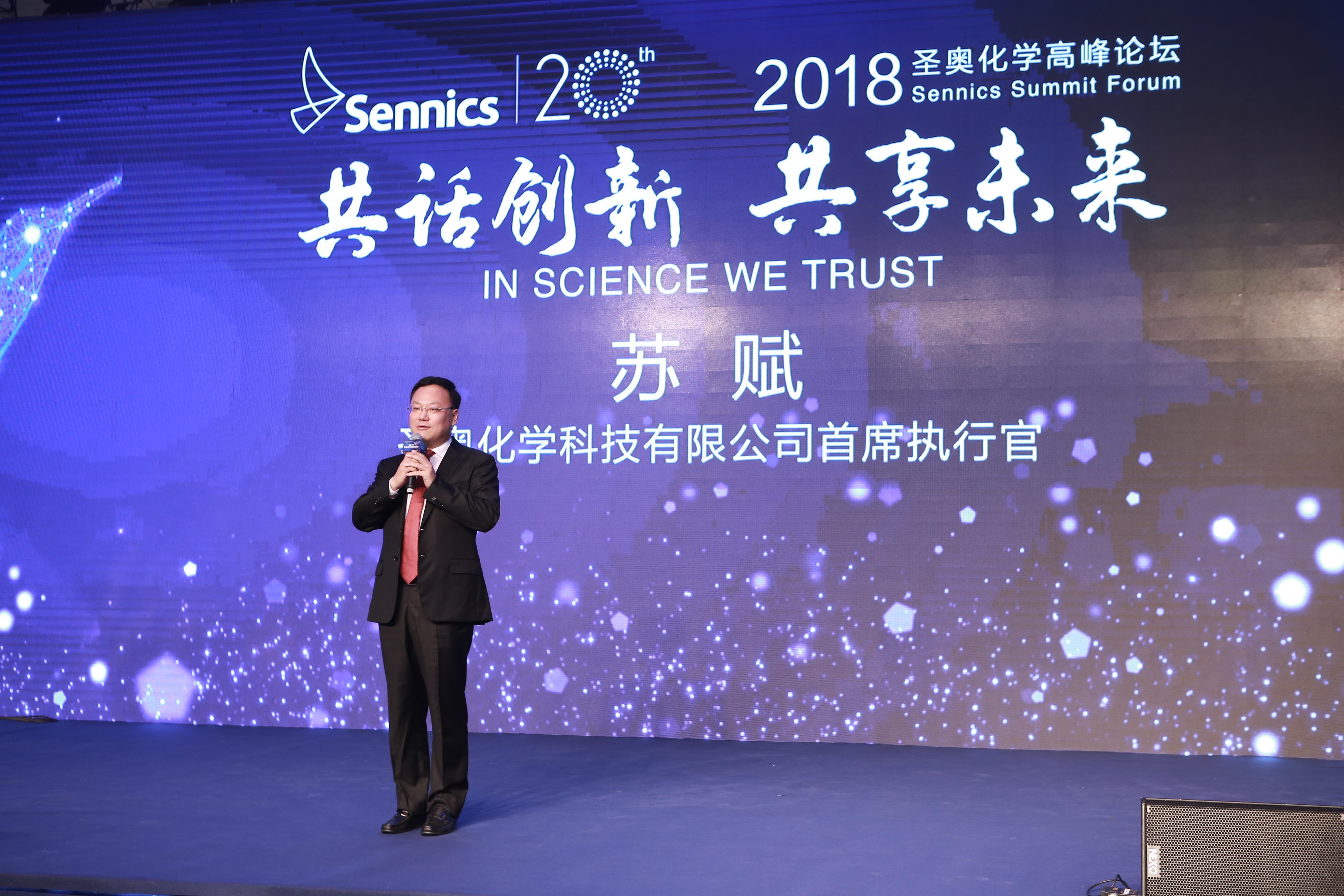 作為高峰論壇主辦方,圣奧化學(xué)CEO蘇賦對(duì)各位嘉賓的到來(lái)表示感謝,他強(qiáng)調(diào)表示,公司將堅(jiān)持以“科學(xué)至上”為核心價(jià)值觀,以創(chuàng)新驅(qū)動(dòng)實(shí)現(xiàn)百億圣奧跨越式發(fā)展。
