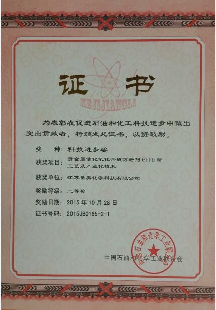 11月18日,全國(guó)石油和化工科技創(chuàng)新大會(huì)在北京人民大會(huì)堂新聞發(fā)布廳召開,原十屆全國(guó)人大常委會(huì)副委員長(zhǎng)顧秀蓮、中國(guó)石油和化學(xué)工業(yè)聯(lián)合會(huì)會(huì)長(zhǎng)李壽生、名譽(yù)會(huì)長(zhǎng)李勇武等領(lǐng)導(dǎo)出席會(huì)議。江蘇圣奧的“貴金屬催化氫化合成防老劑6PPD新工藝及產(chǎn)業(yè)化技術(shù)”項(xiàng)目榮獲科技進(jìn)步二等獎(jiǎng)。