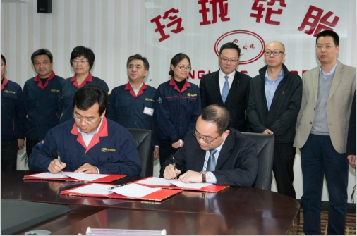 圖為中化國(guó)際常務(wù)副總經(jīng)理覃衡德與玲瓏輪胎董事長(zhǎng)王鋒簽署戰(zhàn)略合作協(xié)議