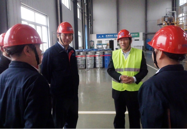 圖為中化國際張?jiān)龈偨?jīng)理深入生產(chǎn)一線調(diào)研