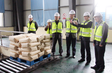 圖為范仁德(右二)參觀山東圣奧包裝車間