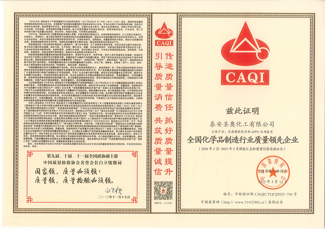 日前,泰安圣奧及旗下產(chǎn)品橡膠防老劑6PPD、硝基苯榮獲由中國質(zhì)量檢驗(yàn)協(xié)會(huì)授予的“全國化學(xué)品制造行業(yè)質(zhì)量領(lǐng)先企業(yè)”和“全國產(chǎn)品和服務(wù)質(zhì)量誠信品牌”兩項(xiàng)大獎(jiǎng)。