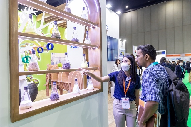 圣奧化學展臺設計延續(xù)了一貫的簡潔、精巧風格,融合了環(huán)保、科技、數(shù)字化等主題元素,泰國本地風俗元素的植入成為點睛之筆。展會第一天,主辦方對公司進行專訪,圣奧泰國員工介紹了公司產(chǎn)品、“低碳節(jié)能、綠色環(huán)?!崩砟詈鸵許mart Sennics為指引的一體化運營體系,吸引了大量參會人員參觀,給諸多企業(yè)代表留下了深刻印象。
