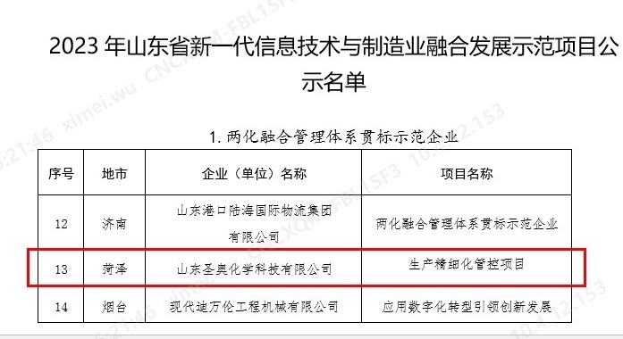 山東省工業(yè)和信息化廳日前公布了《2023年新一代信息技術(shù)與制造業(yè)融合發(fā)展的示范名單》,山東圣奧憑借“生產(chǎn)精細(xì)化管控項(xiàng)目”,被認(rèn)定為兩化融合管理體系貫標(biāo)示范企業(yè)。