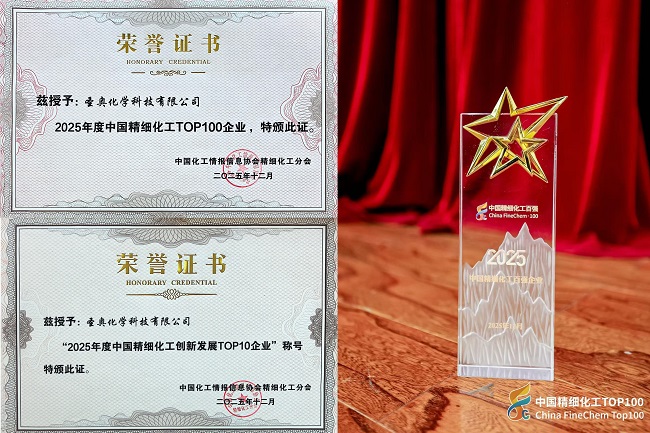 12月4日,第二十五屆精細(xì)化工行業(yè)(寧東)大會(huì)在寧夏寧東能源化工基地召開。會(huì)議發(fā)布“2025年中國精細(xì)化工百強(qiáng)”及“2025年中國精細(xì)化工創(chuàng)新發(fā)展企業(yè)十強(qiáng)”兩大權(quán)威榜單,圣奧化學(xué)憑借突出表現(xiàn),成功躋身精細(xì)化工百強(qiáng)第29名,創(chuàng)新十強(qiáng)第6名,相較2024年排名分別實(shí)現(xiàn)了6個(gè)位次、1個(gè)位次的提升。這一成績充分印證了公司經(jīng)營管理、研發(fā)投入和綠色發(fā)展綜合實(shí)力持續(xù)增強(qiáng),成為精細(xì)化工行業(yè)高質(zhì)量發(fā)展的標(biāo)桿企業(yè)。