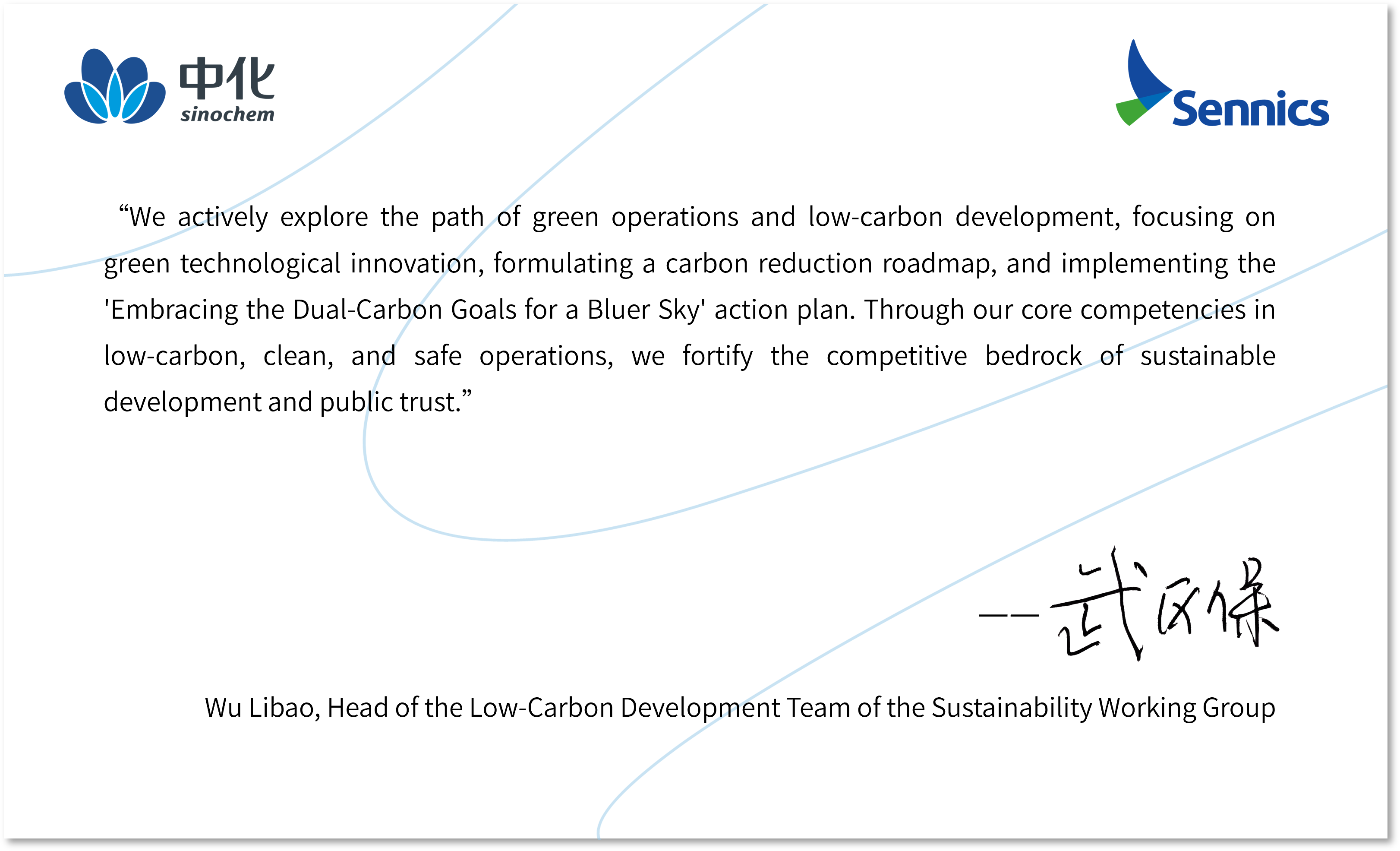 Sennics is committed to "green and ultimate" development by embracing cutting-edge green technologies, promoting the application of energy-saving and low-carbon technologies, and reducing energy consumption and the generation of greenhouse gases (GHGs). We will strive to achieve carbon peak by 2030 and carbon neutrality by 2060, to meet the energy consumption intensity and general control goals, and to continuously reduce GHG emissions through: 1) optimizing our product mix; 2) developing eco-friendly and green technologies; 3) promoting technological transformation and the application of low-energy equipment; 4) coordinating energy use across our parks; 5) striving to achieve operational excellence and create a green supply chain; and 6) promoting energy performance evaluation of new projects.