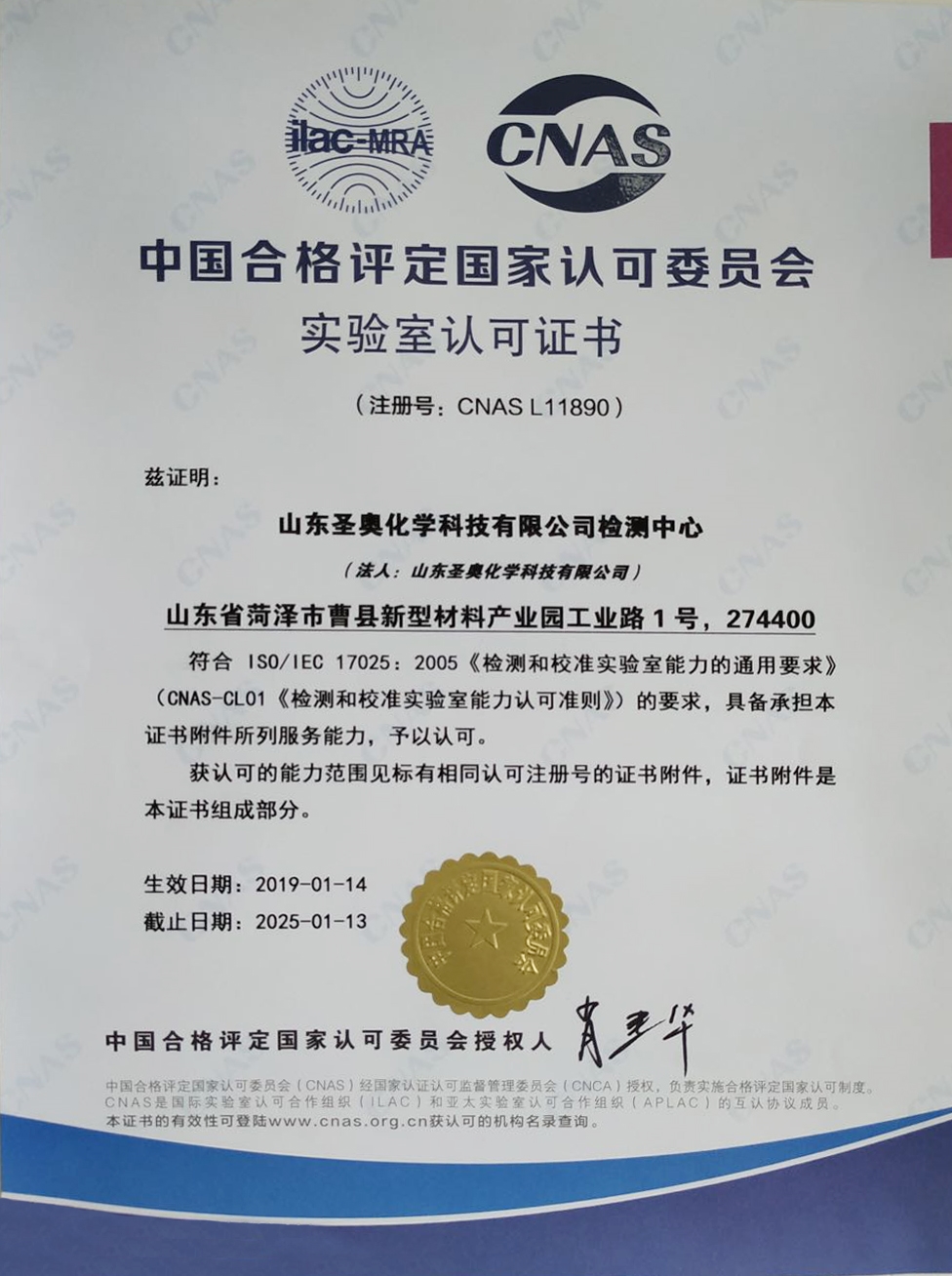 The Central Laboratory of Sennics Shandong has been recognized by China National Accreditation Service for Conformity Assessment (CNAS), and successfully ranked among the internationally and nationally recognized laboratories. Since September 2017, Sennics Shandong has run the ISO/IEC17025 laboratory management system.