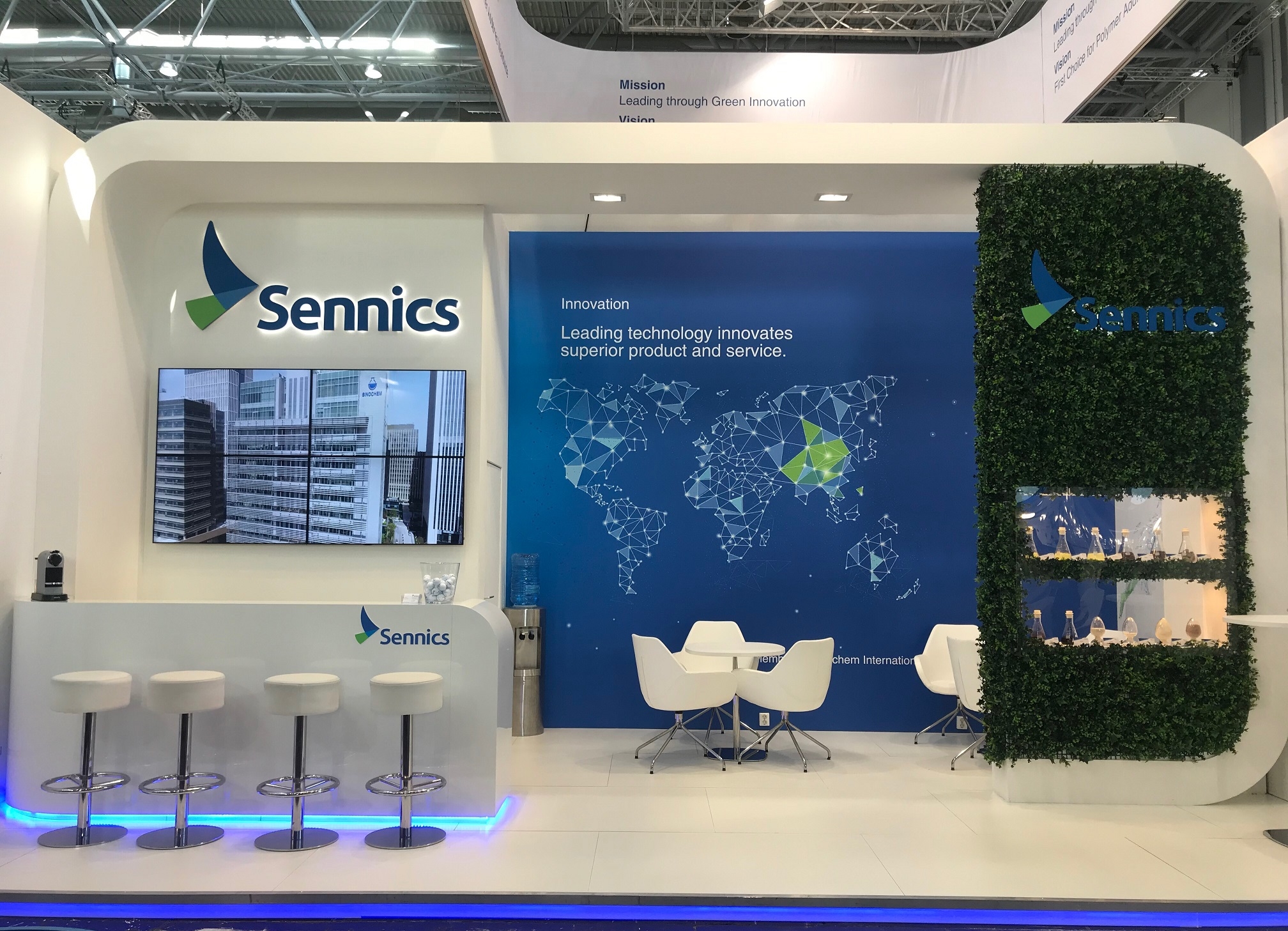 Sennics' booth design followed its consistent style of conciseness and exquisite layout. The design combined key elements such as green concepts, environmental protection and technologies, demonstrated the company's corporate culture and its green, innovative and sustainable polymer additives solutions as well as its strength and image as a tech-based enterprise engaged in fine chemical production. Enterprise representatives from all over the world were deeply impressed.